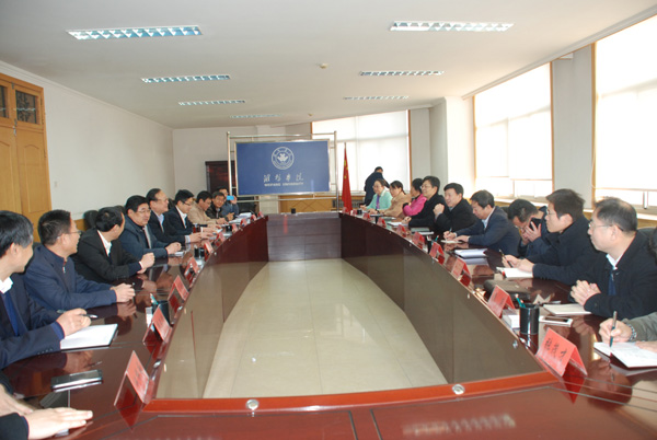 座谈会上,孙文亮对李昌武一行的来访表示欢迎,希望两校之间进一步加强交流,促进双方的发展。冯滨鲁向客人介绍了学校的发展定位、办学理念,特别是近几年来学校在教学科研、人才人事、学生管理、后勤管理等方面的发展情况。双方各对口单位、部门也分别进行了交流。在丁子信的陪同下,李昌武一行还到我校的大学生创业孵化基地进行了参观。
