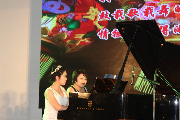 本站讯 12月22日,“2015高雅艺术进校园”活动暨纪念世界反法西斯战争胜利70周年潍坊学院《琴颂祖国》键盘专场音乐会在青岛科技大学崂山校区第二报告厅举行。青岛科技大学副校长张淑华、潍坊学院副院长朱猷武、潍坊学院原院长王守伦与700余名师生共同欣赏了演出。曲声悠扬,琴颂祖国。