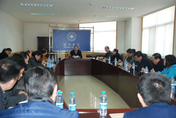 冯滨鲁在会上进一步强调了学校所面临的形势。他说,今年是“十三五”开局之年,是学校实现内涵发展的关键期。发展新常态为学校提供了重大发展机遇的同时,学校发展也面临着来自多方面的严峻挑战,我们要保持清醒的认识。他要求,学校要进一步深化内涵建设,扎实做好各项工作,在内涵、特色、质量上下工夫;要发扬“和衷共济、艰苦奋斗、追求卓越”潍院精神,争创一流业绩,为建成省内同类高校一流、优势特色突出的综合性应用型大学的目标作出贡献。