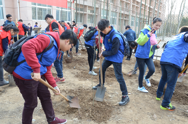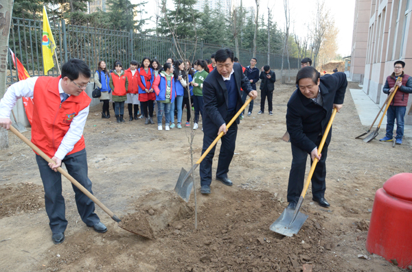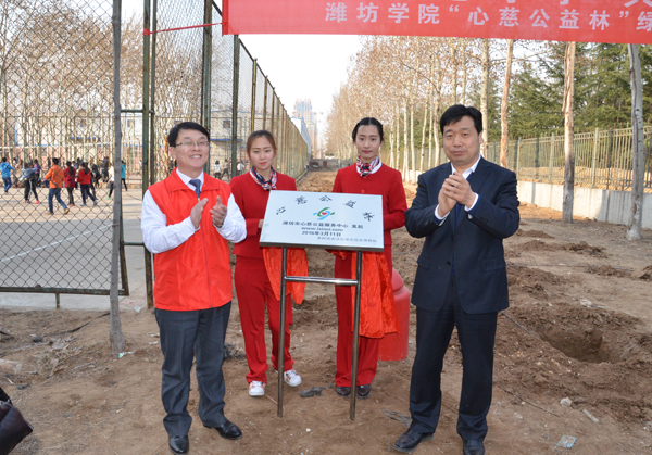 本站讯 3月11日,心慈公益携手我校学子举行“心慈公益林”植树活动。副校长王清明与心慈公益理事长徐振起共同为“心慈公益林”揭牌,并栽下树苗。