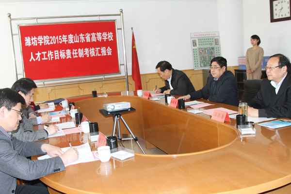 考核期间,考核组召开了各级各类人员代表满意度测评会,并同部分高层次人才代表进行了座谈交流,了解了我校人才工作的现状。查阅了我校人才工作相关文件和有关支撑材料。在冯滨鲁、朱猷武的陪同下,考核组实地查看了省级重点学科“光学”及其“多光子纠缠与操纵”实验室、节能研究院、大学生创业孵化基地、省高校重点实验室“生物化学与分子生物学”、文博研究院、潍坊文化名人馆等人才工作平台载体建设情况。