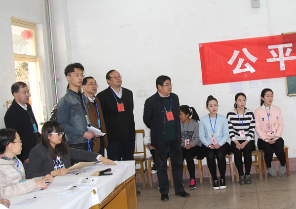 本站讯 3月17日至20日,2016年学前教育专业春季高考技能考试在我校开考。党委书记孙文亮,校长冯滨鲁、副校长朱猷武在考试期间到考试现场巡视考务办公室、候考室、考场情况,对考务组的工作给予了充分肯定。
