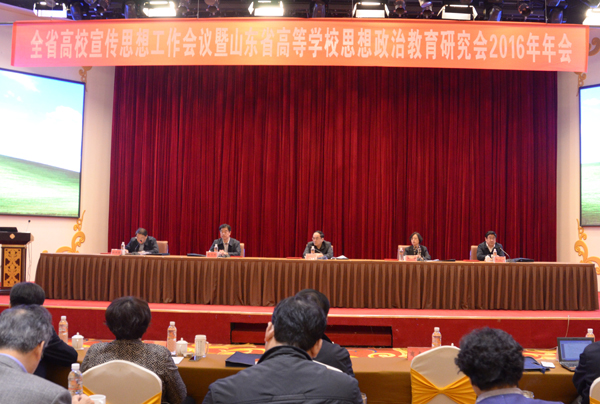 本站讯 3月31日,全省高校宣传思想工作会议暨山东省高等学校思想政治教育研究会2016年年会在我市召开。会议交流总结了去年全省高校宣传思想工作,研究探讨了新形势下加强和改进高校宣传思想工作的思路和措施,对今年工作作出了部署安排。教育部思政司副司长王光彦就加强和改进高校宣传思想工作作了报告。省委高校工委副书记黄琦作重要讲话,我校党委书记孙文亮出席会议并致辞。