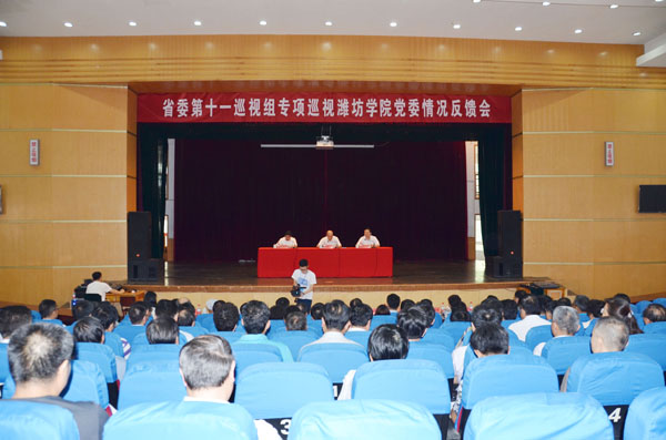 根据省委统一部署,2016年2月26日至3月25日,省委第十一巡视组对潍坊学院党委开展了专项巡视。巡视组认真贯彻中央巡视工作方针、巡视工作条例和省委要求,坚决落实政治巡视要求,紧紧围绕加强党的领导这个根本,聚焦全面从严治党,把纪律挺在前面,以“六项纪律”为尺子,从严从实开展巡视监督。通过广泛开展个别谈话,认真受理群众来信来访,调阅有关文件资料,深入了解情况,发现问题、形成震慑,顺利完成了巡视任务。省委巡视工作领导小组听取了巡视组的巡视情况汇报,并向省委报告了巡视情况。