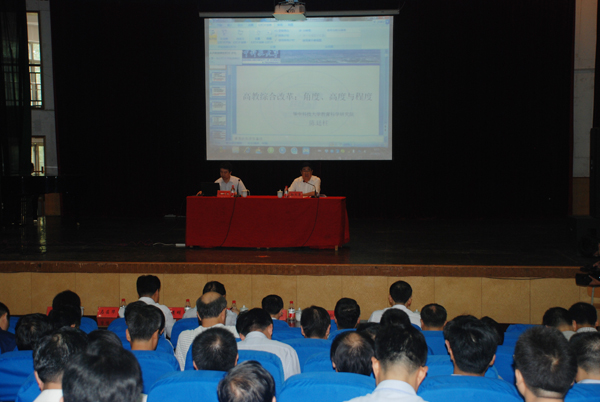 在陈廷柱教授所作的《高教综合改革:角度、高度、程度》专题报告会上,陈教授利用他多次高校规划编制实施中摸索出的宝贵经验和多年的理论实践成果,深入浅出地阐述了当今高等教育综合改革、高校发展战略规划的最关键、最核心的问题,即角度、高度、程度的问题,用大量的事例说明了在综合改革中需要注意的事项。孙文亮主持了报告会。