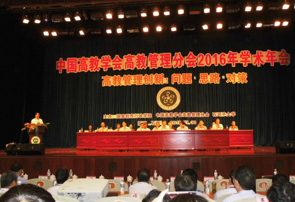 本网讯 由国家教育行政学院、中国高教管理研究会主办,石河子大学承办的中国高教学会高教管理研究分会2016年学术年会,日前在石河子大学召开。来自全国近百所教育机构、高等学校的210余名代表参会。会议由原国家教育行政学院党委书记、高教管理研究会理事长黄百炼主持。会议围绕“高教管理创新:问题•思路•对策”做学术交流,共同研讨高教管理与改革创新问题。教育部高教司司长张大良、国家教育行政学院副院长李五一、新疆生产建设兵团副政委卢晓峰、《中国高教研究》编辑部主任范笑仙、石河子大学党委书记何慧星分别在会上致辞。