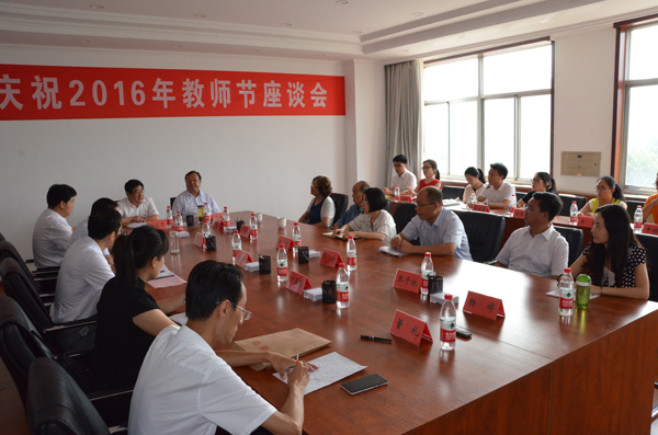 本网讯 9月8日,在第32个教师节来临之际,学校召开教师代表座谈会。党委书记孙文亮、校长冯滨鲁发表热情洋溢的讲话,并向全校教师致以节日问候。副校长王清明、丁子信、王旭升出席座谈会。