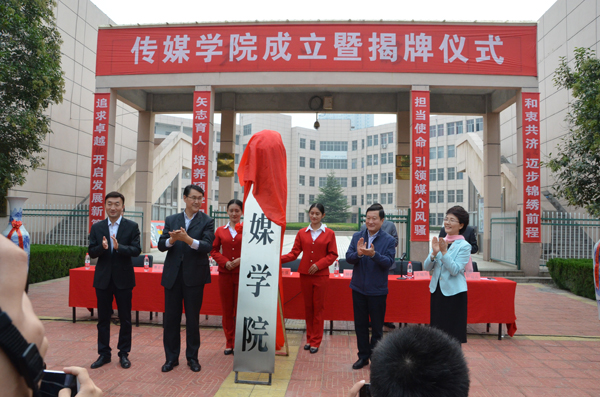 本网讯 10月15日,我校传媒学院成立暨揭牌仪式在7号教学楼前举行。