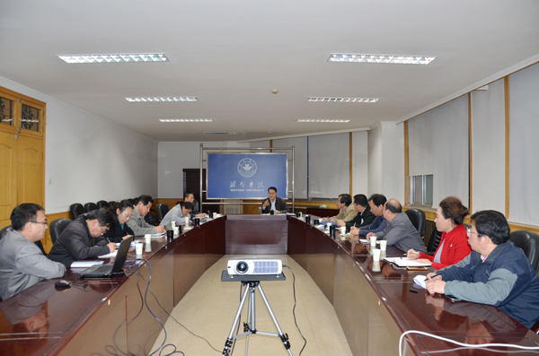 本网讯 11月9日,学校召开2017年国家社科基金、教育部人文社科项目申报情况汇报会,部署明年的立项申报工作。副校长赵光强在会上强调,要高度重视国家社科基金项目(包括教育部人文社科项目)的申报工作,增强为教师服务的意识,营造良好的科研环境,全面加强科研管理,做好申报工作。汇报会由科研处负责同志主持,12个文科学院分管科研工作的负责人、科研处有关负责同志参加了汇报会。
