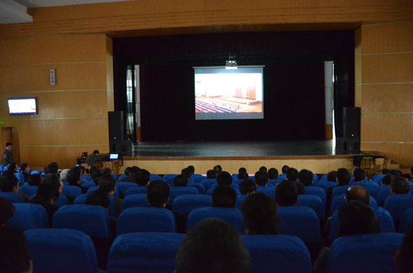 本网讯 11月17日,学校组织全体处级干部,各教学单位综合办主任、学工办主任、团总支书记,各中心党政主要负责人,集体观看警示教育片《潍水镜鉴》。校领导孙文亮、冯滨鲁、丁子信、王旭升出席观看。纪委书记马茜华主持活动并在观看前发表讲话。