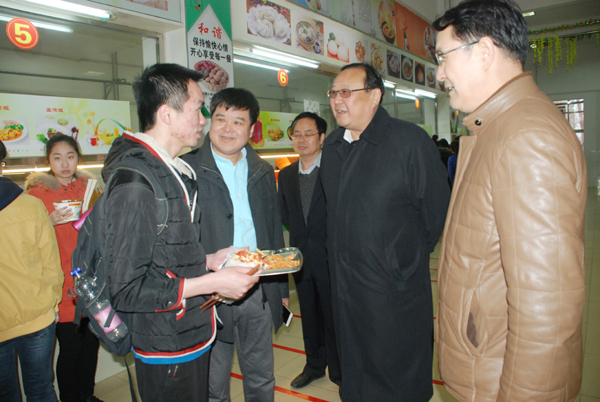 在安顺校区,冯滨鲁一行听取了安顺校区管理办公室负责同志的工作汇报,并就该办公室工作中遇到的校区资源调整、资产清查交接、公车管理、师范专业实验场所、跨校区上课办公场所等问题作出明确指示。冯滨鲁一行还在安顺校区管理办公室、特教幼教学院、教师教育学院负责同志的陪同下,现场查看了二级学院的办公场所、图书馆、校区餐厅和校园环境,每到一处都认真听取汇报、详细询问情况。在学生餐厅,冯滨鲁一行与正在就餐的学生进行了交流,询问了饭菜价格,并征求学生对餐厅管理意见。