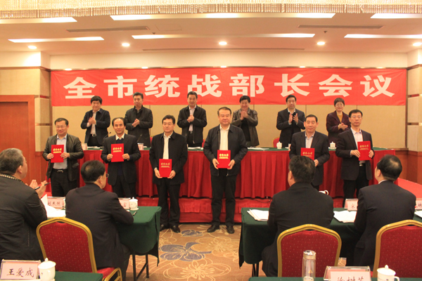 本网讯 3月26日,中共潍坊市委召开全市统战部长工作会议,会议传达了全省统战部长工作会议精神,总结了2016年全市统战工作,并对2017年全市统战工作进行了重要部署,市委常委、统战部部长王兆辉作了重要讲话。会上,我校党委统战部主要负责人作了大会交流发言,党委统战部被评为全市统战理论调研宣传工作先进单位,成为潍坊市唯一一所高校获奖单位。马克思主义学院教师侯国亮、王幸平分别获得统战理论调研宣传优秀奖。