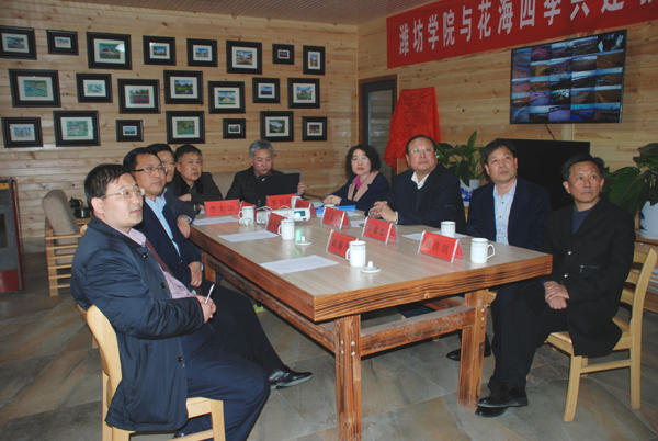 仪式上,花海四季休闲农业基地建设总指挥李自钧简要介绍花海四季项目规划及建设情况。冯滨鲁介绍了学校的学科专业及师资队伍,特别是近几年服务地方经济情况。他希望以教学实践基地的建立为契机,双方本着互惠互利的原则,进一步加强合作,实现共赢。李华刚也在介绍了峡山经济发展情况及发展愿景后,希望能与我校进一步加强深度合作、多层次的合作。