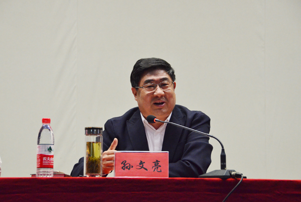 孙文亮在会上发表题为“声音的力量”的主旨讲话,声情并茂,文采飞扬,接地气,极具感染力。他指出,这一年,我们听到了高昂的声音,各项工作佳音频传。这一年,我们听到了感动的声音,各类大赛竞相夺冠。新一年,我们听到了振奋的声音,学校正部署推动全方位综合配套改革,变革箭在弦上,突破已在路上。我们要听得到时代改革的强音。改革是时代的主旋律,是当代社会最鲜明的特征。高等教育已朝“四个改革”再出发。如何在改革大势中生存、壮大,在转型大潮中升级、进位,向改革要红利,以改革促发展,已时不我待,克不容缓。我们要听得到同行赛跑的足音,迈开步子、甩开膀子、喊出号子,努力实现弯道超越。我们要听得到学生求索的心音,要多放到学生位置换位思考、多从自身成长经历同位体验,把工作做到学生最需要的时候、最需要的地方。听得到改革的强音,我们将增添不断奋进的活力;听得到赛跑的足音,我们将增加追求卓越的压力;听得到求索的心音,我们将增加立德树人的动力。我们还要辨得清“逆耳之言”,不为所扰;抛得开“悦耳之语”,不为所惑。