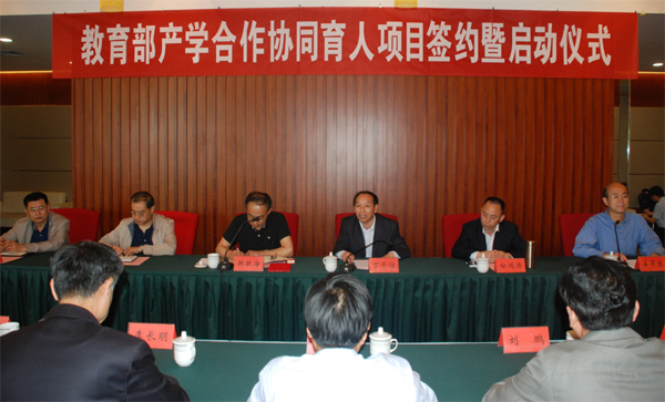 丁子信在讲话中指出,随着中国经济的持续高速发展,产业转型所造成的新型产业人才短缺,已严重制约区域经济发展的步伐。国务院、教育部连续出台高等教育改革和普通高校向应用型转变的一系列政策,呼唤“人才供给侧改革”。推进产学合作协同育人,需要汇聚企业资源,深入开展教学内容和课程体系改革、师资培训、实践条件建设、校外实践基地建设。我校与青岛英谷教育科技股份有限公司的签约,既是双方合作办学成绩的总结,更是双方深入合作、深度融合的新起点。丁子信要求2016年立项的9个项目的二级学院和负责人,带领研究团队,强化合作专业的应用性、实践性研究,切实提高应用型人才培养质量,同时与正在进行的人才培养方案的修订结合起来。他希望,双方以这次签约为契机,进一步开展合作,积极探索产教融合、协同育人以及应用型高校标准专业(群)体系内涵建设问题,充分发挥各自优势,为行业、企业培养急需的应用型、跨专业复合型人才。