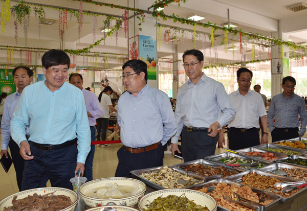 孙文亮、赵光强一行还实地查看了学生餐厅,与正在用餐的学生们进行了亲切交谈,了解饭菜品种、价格、质量和同学们的反响等。随后,孙文亮、赵光强一行在餐厅用了午餐。