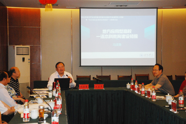 校长冯滨鲁也在会上作了题为《地方应用型高校一流本科教育建设初探》的报告。冯滨鲁在报告中指出,建设一流本科教育,是“双一流”建设的重要任务,是地方高校的“立校之本”,是应用型高校转型成功的重要标志。他就应用型一流本科教育人才培养体系构建,包括培养目标、培养规格、培养模式以及质量保障体系构建等四个方面进行了深刻的理论研究和分析。结合我校建设经验,对应用型一流本科教育建设的路径进行了全面阐述,为其他地方高校主动适应经济和社会发展需要,积极转型提供了成功经验。