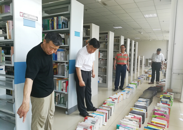 王清明认真查看了工作现场,对图书馆在时间紧、任务重、天气炎热的情况下尽心尽力的工作给予了充分肯定,并协调安排了特教幼教师范学院160名学生的勤工助学岗位,对工作中遇到的其他问题进行了现场协调解决。