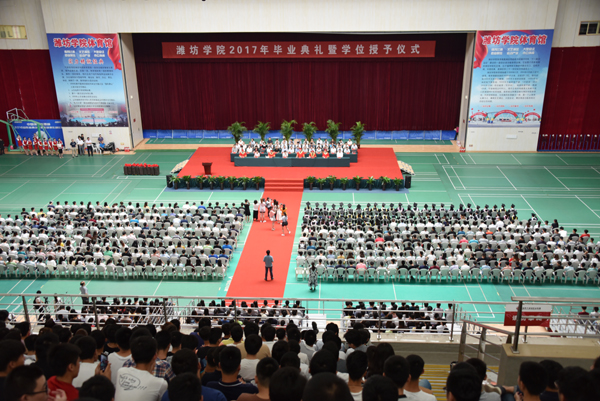 “菁华潍院,韶华流年。四年前的那个夏末,你们意气风发来到潍坊学院。四年里,一千四百多个日夜,挥洒的汗水,喜悦的笑声,都是记忆里鲜亮的一抹色彩,有如韶光留下的依稀幻影。你们的身影留在了52路公交站台,你们的沉思映进了弘德湖的波影,你们的脚印刻入了上下求索的图书馆门阶。此去经年,在你们未来明亮或不明亮的日子里,那些专属潍院的记忆将会无数次复现,那份独钟潍院的情怀将让你们一生梦萦魂牵!母校,一个想忘都忘不掉的地方,无论你走得多远,无论你何时回看,它都在那里,不离不弃!”孙文亮的开场引发了毕业生们的共鸣。