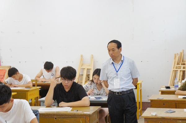 本网讯 7月3日,我校期末考试正式开始。副校长丁子信在教务处负责人陪同下,到考场检查期末考试工作。