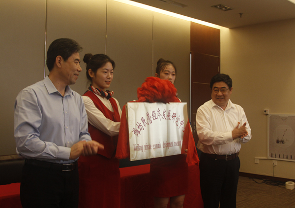 本网讯 9月14日,潍坊学院党外高层次人才民企挂职暨潍坊民营经济发展研究中心揭牌仪式在我校体育馆会议室举行。潍坊市委常委、统战部长王兆辉出席会议并讲话;学校党委书记孙文亮和市政协副主席、工商联主席李士来共同为“潍坊民营经济发展研究中心”揭牌;学校党委统战部长徐树芝和市工商联副主席郭富斌签订“潍坊学院与潍坊市工商联校企联姻协议”;市委统战部常务副部长王志明,市委统战部副部长、市工商联党组书记胡立出席会议。