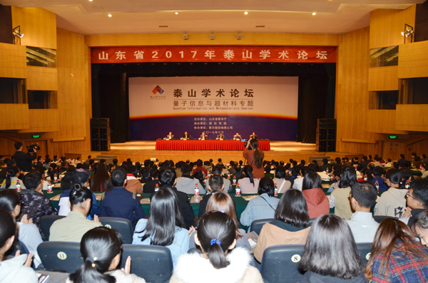 本报讯 10月14日至15日,由山东省教育厅主办、我校承办、歌尔股份有限公司协办的2017年泰山学术论坛——量子信息与超材料专题研讨会,在潍坊市富华国际会议中心举行。学校党委书记孙文亮和大会特邀中国科学院院士在14日上午的开幕式上致辞。校长冯滨鲁主持开幕式。特聘教授秦勇,副校长朱猷武,歌尔股份有限公司副总裁吉永出席开幕式。开幕式后,大会特邀中国科学院院士作主题报告。