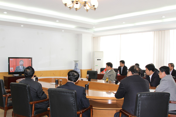 学校领导孙文亮、冯滨鲁、王清明、丁子信、马茜华、朱猷武、赵光强和理论学习中心组其他成员在行政楼702会议室认真收看了开幕式盛况。