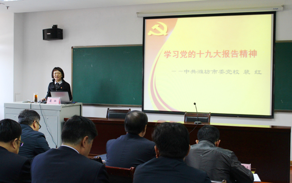 此次培训特邀市委党校副校长裴红,市委党校党史党建教研部主任、教授蒿艾莉,市委党校党史党建教研部副主任、讲师秦鹏同志,先后作了题为《深入学习党的十九大精神》《学习尊崇党章,做合格共产党员》和《落实“三会一课”制度,严格党内政治生活》的专题讲座。培训还专设了党性教育现场教学环节,进一步加强实践锻炼,深化理论学习。
