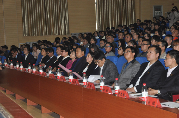 本网讯 11月2日,2017年山东省暨潍坊市大中专学生志愿者暑期“三下乡”社会实践活动报告会在学校图书馆报告厅隆重举行。学校副校长王清明、共青团潍坊市委书记刘艳芳、副书记陈珊珊、学少部张帅,驻潍14所大中专院校团委负责同志及相关负责同志出席了本次会议。校团委班子成员、各学院团总支书记副书记、驻潍各大中专院校社会实践优质项目团队和学生代表近500人参加了报告会。