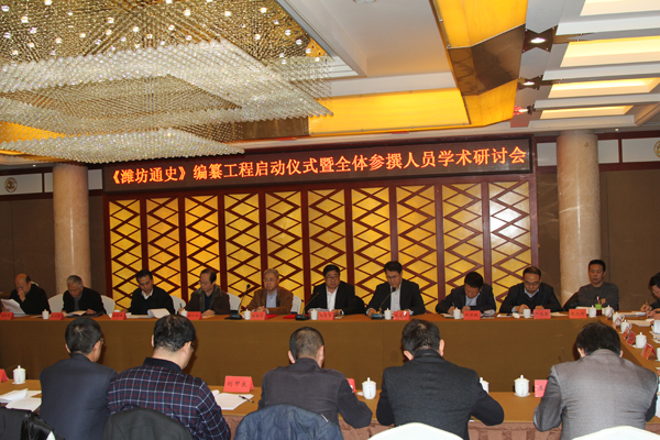 本网讯 12月2日,由中共潍坊市委宣传部和我校主办的《潍坊通史》编纂工程启动。党委书记孙文亮致辞。副校长赵光强主持启动仪式。潍坊市委宣传部、市委党史研究室、市档案局、市党校等负责同事及全体参编人员参加了启动仪式。