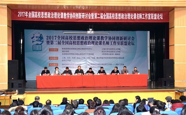 本网讯 12月10日,“2017年全国高校思想政治理论课教学协同创新研讨会暨第二届全国高校思想政治理论课名师工作室联盟论坛”在我校举行。来自国内近60所知名高校的近150位专家学者以及我校马克思主义学院的部分师生近300人参加了本次研讨会和论坛。