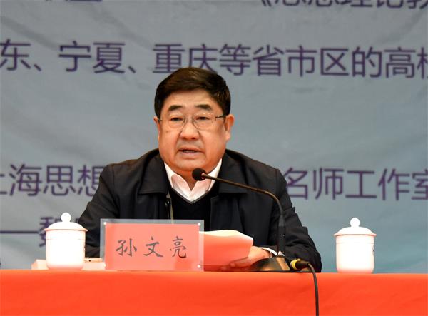 孙文亮在致辞中代表全校师生员工向出席研讨会和论坛的专家和来宾表示热烈欢迎。他介绍了学校的基本情况和近期取得的成绩,特别是学校在思想政治课建设上取得的成绩。他指出,近年来,学校认真学习贯彻习总书记“关于高校思政课建设的重要指示”精神,高度重视学校思政课教学与研究工作,深化教育教学改革,组建马克思主义学院,进一步整合思政课教研力量,认真论证规划马克思主义学科建设,学校思政课教学质量不断提高。他希望来自各地的专家学者共同探讨新时代思政课教学面临的前沿性问题,分享思政课教学的研究成果,探索思政课名师工作室的发展建设方向。也希望通过全国高校思想政治理论课名师工作室联盟论坛推动各地名师工作室的科学、健康、稳定、持续发展,进一步发挥名师的带动、示范、引领和辐射作用,实现优质教育教学资源共享,促进高校思想政治理论课课堂教学水平的提高。同时,他真诚地邀请各位领导、专家对我校的名师工作室建设、思想政治理论课教学协同创新实践,以及学科建设、科研、管理、服务等工作多提宝贵意见。