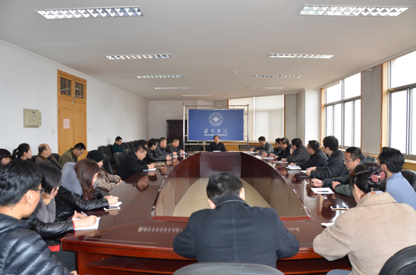 本网讯 2017年12月29日,学校召开专业技术空缺岗位竞聘评价文件修改工作座谈会,副校长朱猷武主持会议并讲话。相关职能部门负责人、部分教师代表参加会议。
