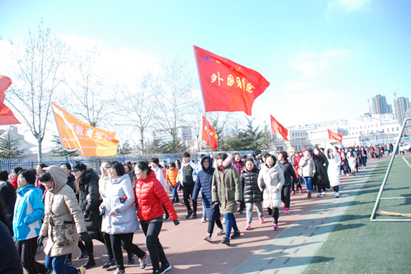 本网讯  为庆祝第108个“三八”国际劳动妇女节,展示我校女教职工“自尊、自信、自立、自强”的精神风貌,38日,学校工会和妇委会在体育场举办“庆三八 巾帼美”第三届女教职工校园健步走活动。