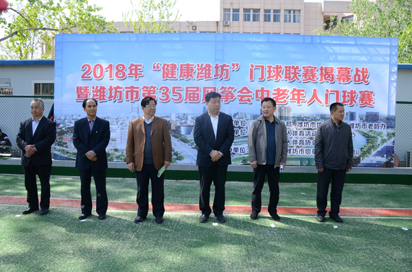 本网讯  4月11日-13日,2018年“健康潍坊”门球联赛暨潍坊市第35届风筝会中老年门球赛在我校门球场举行。校党委副书记王清明、市体育局局长孙沂出席赛事开幕式。来自全市各县市区及市直系统共23支老年门球代表队约170余名老年运动员参加了本次比赛。