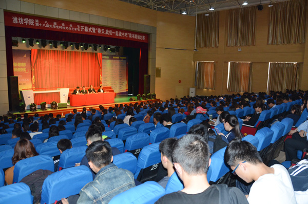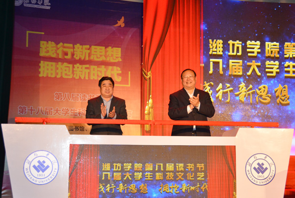 本网讯 4月19日,由学校图书馆、团委、工会联合举办的,我校第八届读书节和第十八届大学生科技文化艺术节开幕暨“春天,我们一起读书吧”读书朗诵大赛决赛在图书馆报告厅举行。党委书记孙文亮、校长冯滨鲁共同启动“双节”开幕式电子屏。党委副书记王清明在开幕式上讲话。副校长朱猷武主持开幕式。