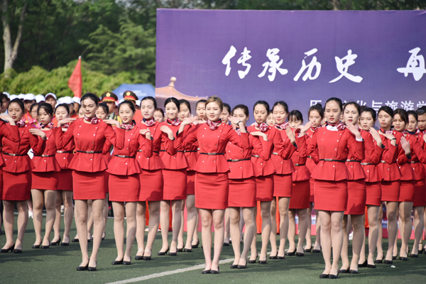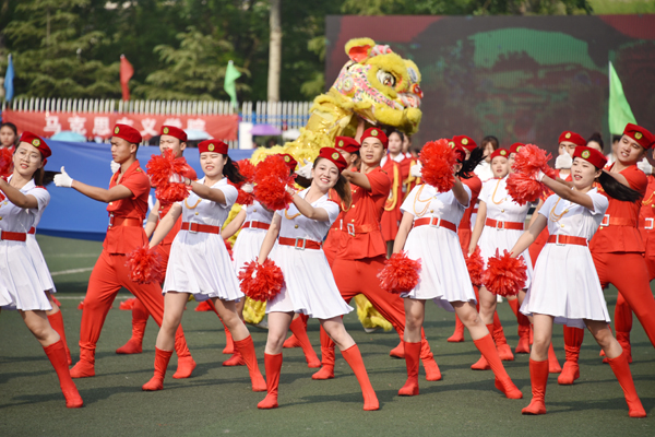 各二级学院的方阵表演是每年运动会开幕式的重要看点。8时整,伴随着激荡高昂的运动员进行曲,国旗、院旗护卫队、花束方队、彩旗方队、裁判员方队作为先导方阵进入会场,开幕式正式拉开帷幕。21支二级学院代表队的方阵表演,围绕“博学的青春最闪亮,争树优良学风校风”的主题,展现出各学院的专业特色,形式新颖,彰显当代大学生的青春活力。体育学院的舞狮表演,点燃全场氛围。队员们在《厉害了,我的国》的旋律下变化着队形舞动,展现出青年人的活力与激情。文学与新闻传播学院的鼓上京剧表演,传承传统文化,将国粹融入舞蹈,在红白两色服饰之下,展示着古典文化之魅力。计算机工程学院队形呈现“IT”字样,用横幅拼成五星红旗,一条条横幅记录的是他们所取得的瞩目成绩,让观众们都为之称赞。特教幼教师范学院的民族舞表演,绿色的草坪仿佛成了宽广的草原,曼妙的身姿,悠扬的乐曲,一场草原盛宴引人入胜。不拘一格的表演,展现出了潍院学子的蓬勃朝气。由教师组成的太极拳表演代表队的表演,刚柔相济,一招一式都透露着威严的气势,展现着教职工的英姿和风采,赢得观众阵阵的掌声和喝彩。