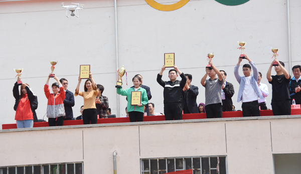 本网讯 骄阳似火,胜利的笙歌奏响。4月28日上午11时,历时两天半的我校第十七届运动会,圆满完成各项赛事,胜利闭幕。学校领导冯滨鲁、王清明、马茜华、朱猷武、赵光强出席闭幕式并为获奖代表队颁奖。闭幕式由党委副书记王清明主持,副校长赵光强致闭幕词。