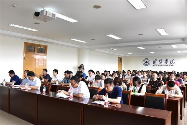 本网讯 7月7日上午,学校2018年“双青”论坛开幕。党委书记孙文亮、校长冯滨鲁出席论坛,副校长赵光强主持论坛。潍坊市外国专家局局长周锴、山东理工大学教授李平出席本次论坛并做辅导报告,学校新选拔的2018年10名“杰青”计划支持人选、20名“优青”计划支持人选及管理期内“杰青”“优青”计划支持人选近80人参加了论坛。