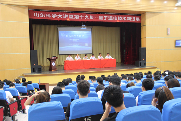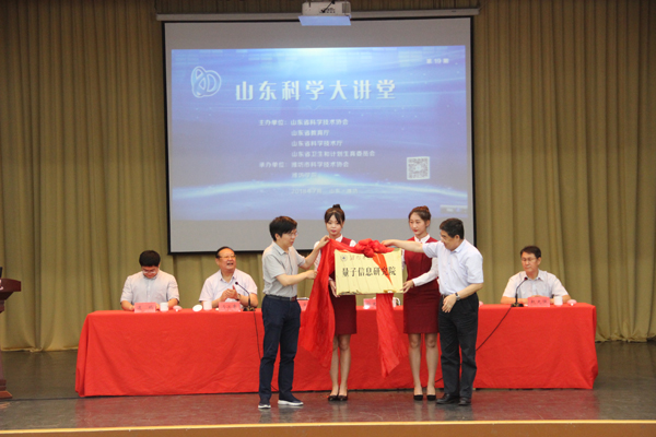 本网讯 7月10日,以量子通信技术新进展为主题的第十九期山东科学大讲堂在我校举行。学校党委书记孙文亮、副校长赵光强,潍坊市科协主席王志亮,中国科学技术大学陈宇翱教授、山东大学逯鹤教授出席会议。校长冯滨鲁主持会议。
