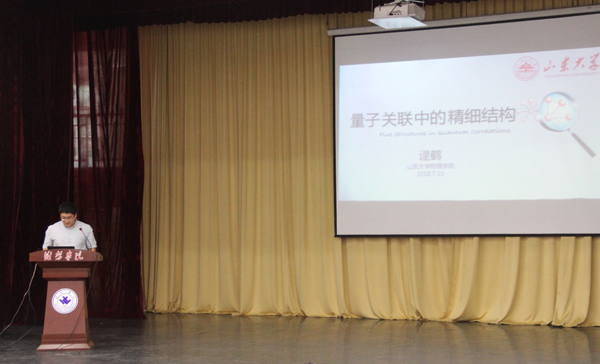 陈宇翱作了主题为《墨子号量子卫星和量子网络》的专题报告,陈宇翱教授从多个方面深入剖析了量子卫星和量子网络的发展历程和发展趋势,把自己的研究课题和发现向大家做了详细介绍。逯鹤关于《量子关联中的精细结构》的报告,详细介绍了自己关于量子纠缠、量子关联的最新研究成果,让大家对量子关联中的精细结构有了更深刻的认识,激发了广大师生的科研兴趣。
