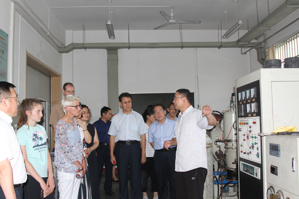 在赵光强的陪同下,安妮内维一行实地考察了机电与车辆工程学院实验室。
