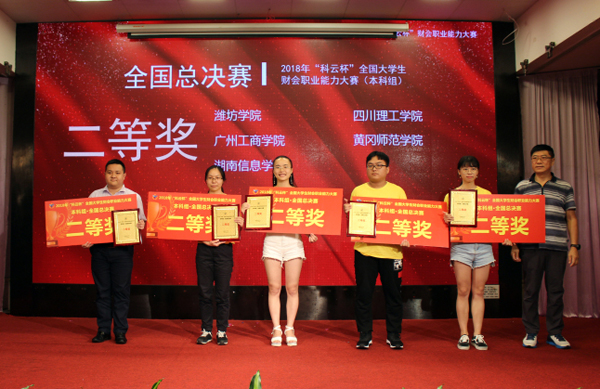 本网讯 7月15日,由中国商业会计学会主办,集美大学财经学院、厦门科云信息科技有限公司承办,科云学堂支持的2018年“科云杯”全国大学生财会职业能力大赛(本科组)全国总决赛在集美大学财经学院举行,我校经济管理学院由刘国英、黄雷2位老师带队,王晓伟、夏珂昕、于鸿杰和郭梦雪等4位同学组成的代表队在全国总决赛中获得二等奖的优异成绩。