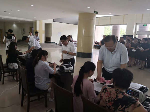 本网讯 9月5日,学校举行“向灾区人民献爱心”募捐活动。学校领导孙文亮、冯滨鲁、王清明、马茜华、朱猷武、赵光强出席活动。全校教职工踊跃捐款,共为灾区募捐26万余元善款。