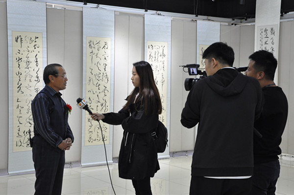 本网讯 10月10日,潍坊市老年大学陈乃磊老师书法作品展在我校美术馆开展。学校党委副书记王清明出席开幕式并参与剪彩,离退休工作处、美术学院负责同志参加了活动。