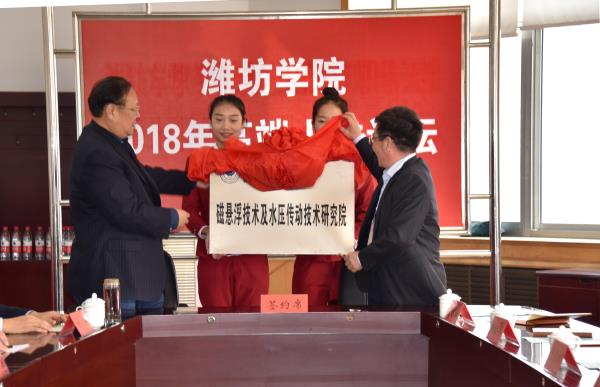 会上,冯滨鲁代表学校与山东省泰山产业领军人才李永胜等3名高层次人才现场签约并为其颁发聘书,为潍坊学院磁悬浮技术及水压传动技术研究院、潍坊学院海洋岩土工程研究中心揭牌。
