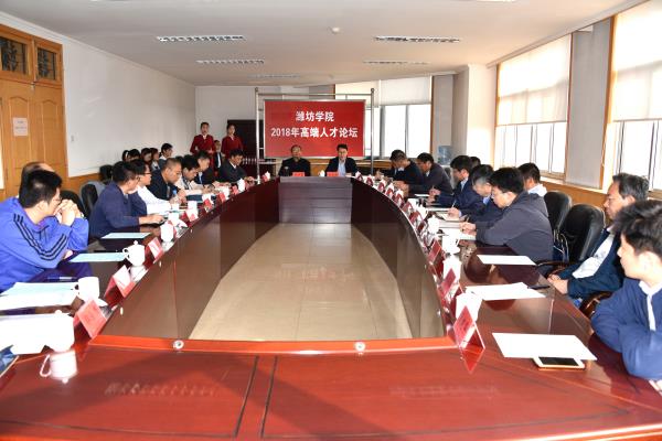 本网讯 10月12日至15日,山东省2018青年学者泰山国际论坛潍坊学院分论坛暨潍坊学院2018高端人才论坛在我校举行。12日上午,校长冯滨鲁、副校长赵光强出席专家见面会,受邀来自国内知名高校和科研院所的20多名专家学者,学校相关职能部门和部分二级学院负责人参加了会议。