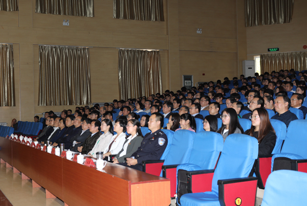 学校领导冯滨鲁、王清明、马茜华、朱猷武、赵光强、王旭升,处级干部,学院学工办、团总支负责人,学生代表聆听了报告。