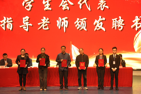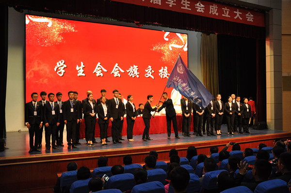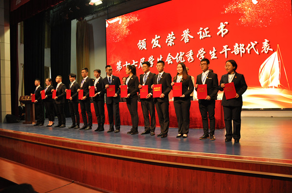 会上团委副书记宣读第十八届学生会骨干成员名单与会领导为第十七届校学生会优秀学生干部代表颁发了荣誉证书第十八届校学生会主席作表态发言他倡导新一届学生会成员要把加强思想引领作为首要目标任务把坚持服务同学作为基本出发点把丰富校园文化活动作为工作重点把强化自身建设作为工作基础为同学们的成长成才为学校的建设发展贡献一份力量