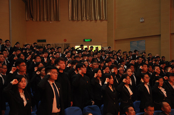 会上学生干部代表宣读了学生会研究生会干部自律公约》,新老两届校学生会主席团进行了会旗交接仪式在场的第十八届校学生会成员在校学生会主席的带领下进行宣誓随后校学生会主席代表校学生会向秘书长颁发聘书